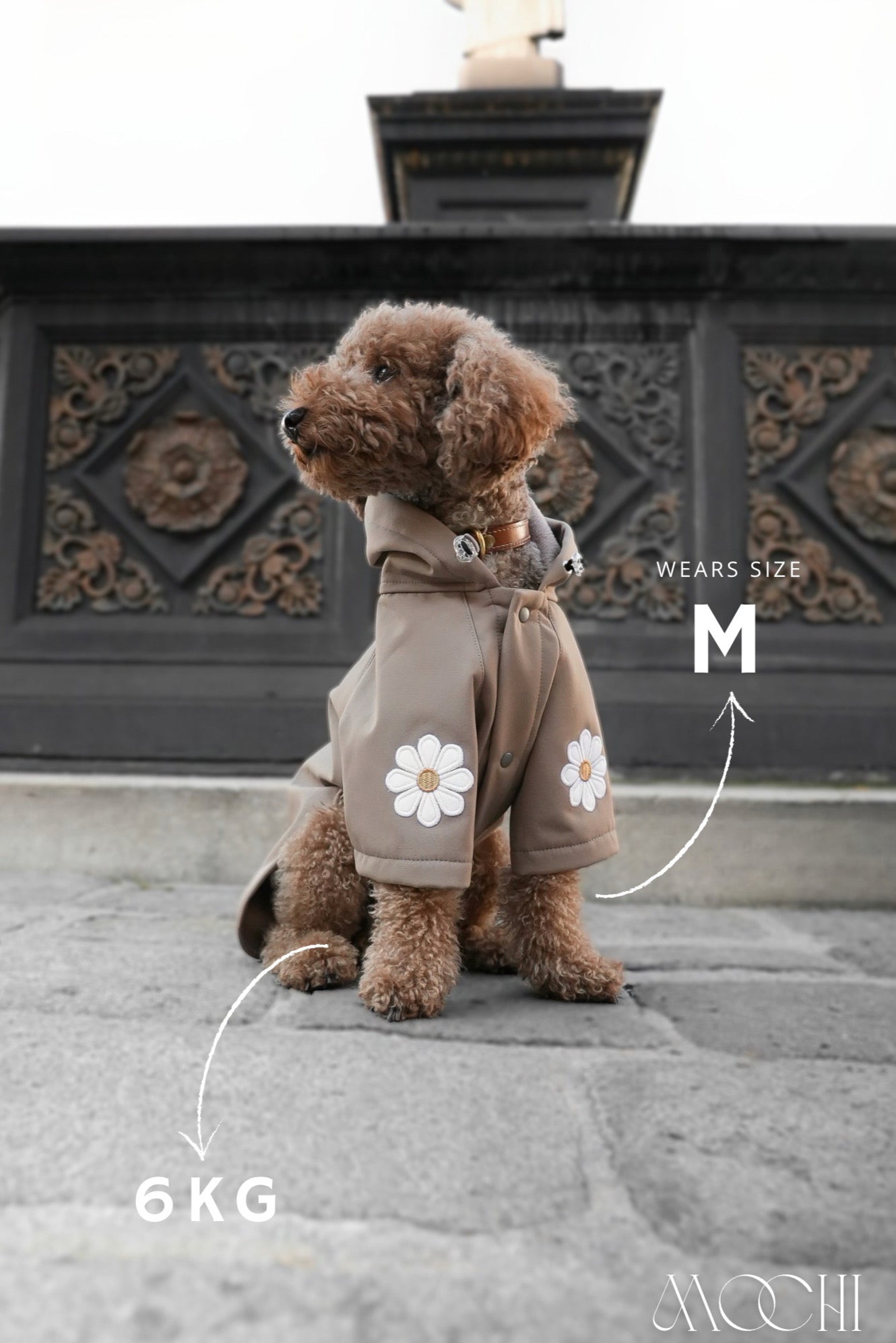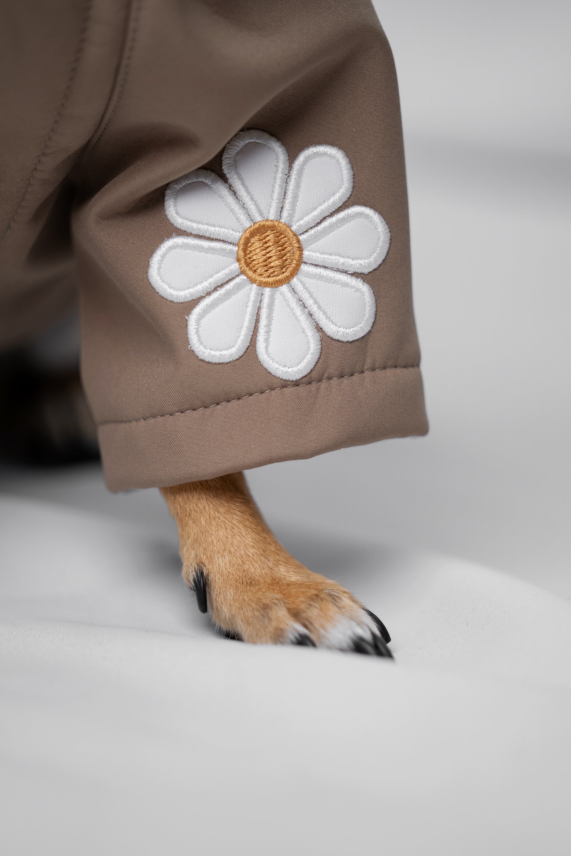 Unsere wasserabweisende Hundejacke mit süßen Blümchen-Patches ist der perfekte Begleiter für regnerische Spaziergänge im Frühling, Herbst und Winter.